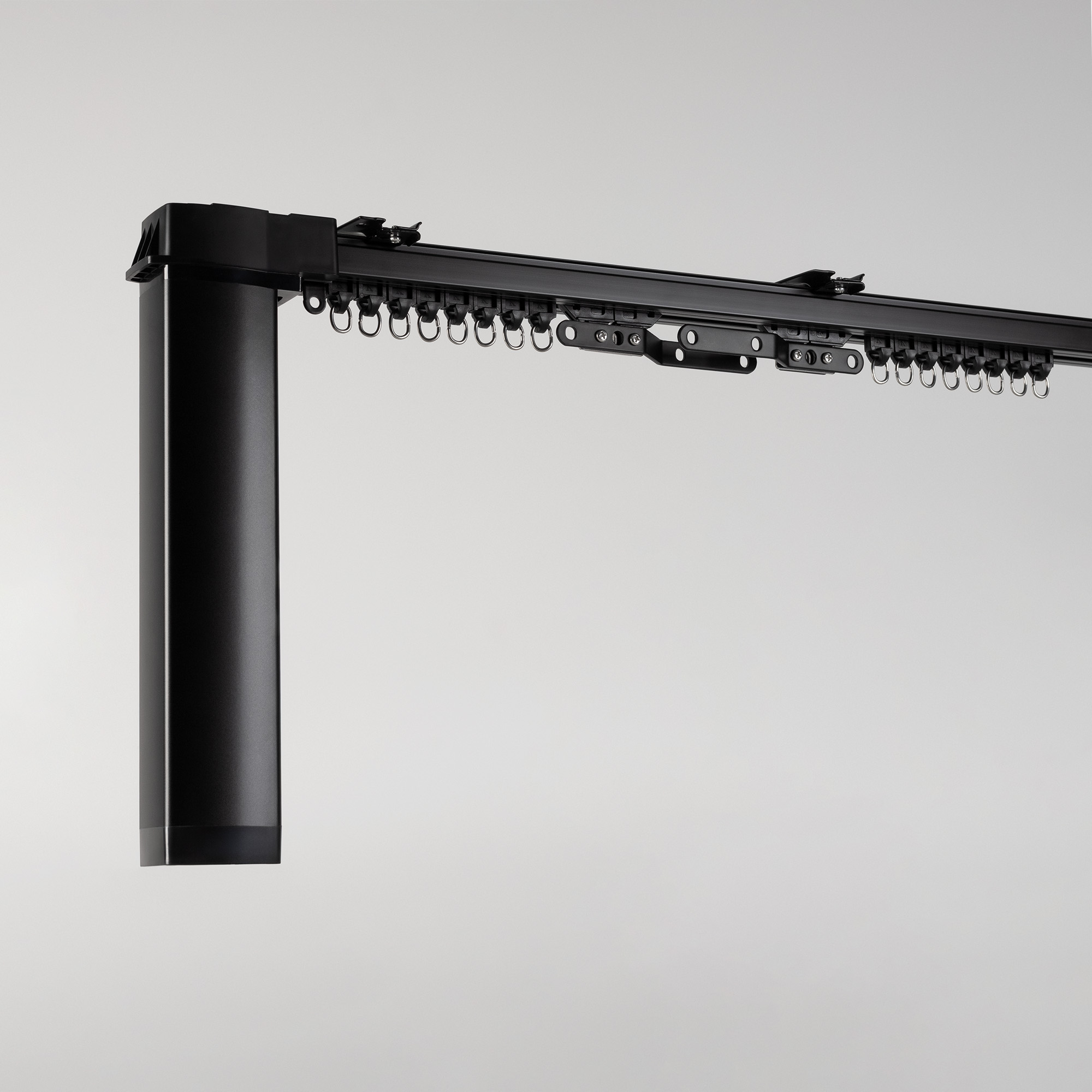 Полный комплект электрокарниза из металлического профиля с мотором. Готовое решение для установки карниза, который будет управляться дистанционно пультом, с помощью приложения на телефоне, голосовым помощником, внешним выключателем через "сухие" контакты, либо вручную. Возможность выбора нужной длины благодаря наборным частям.