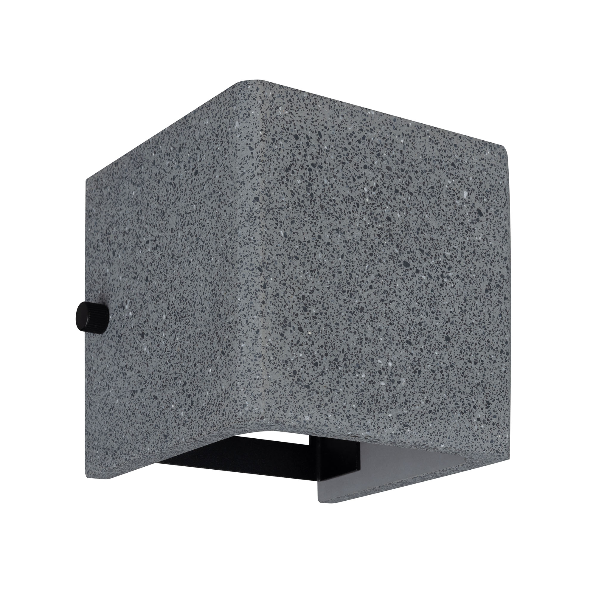 Накладной настенный светильник, свечение вверх/вниз. Мощность 6 Вт, св. поток 286 лм, 49 лм/Вт, теплый 3000 K, CRI>90, изменяемый угол освещения 0°-80°, напряжение питания 230 В. Фигурный корпус из бетона темно-серого цвета и алюминия, экран ударопрочный PC, степень защиты IP65. Размер: длина 120 мм, ширина 120 мм, высота 120 мм. Монтаж накладной. Драйвер встроенный, пульсация <0.5%.