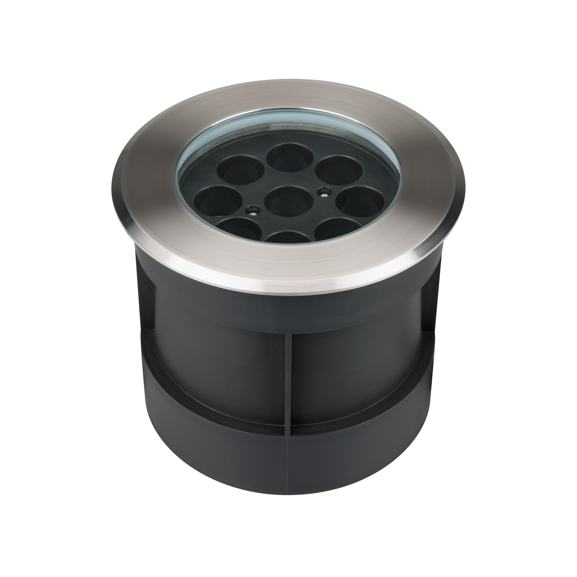 Встраиваемый светодиодный светильник для грунта и пола. Мощность 16Вт, световой поток 1460 лм, цвет дневной 4000К. CRI(Ra)>80, угол 10°. Круглый влагозащищенный корпус IP67, нержавеющая сталь. Экран закалённое стекло. Питание 230В, 16Вт. Размер DxH Ø160x135мм. Установка в отверстие DxH Ø146x130мм.
